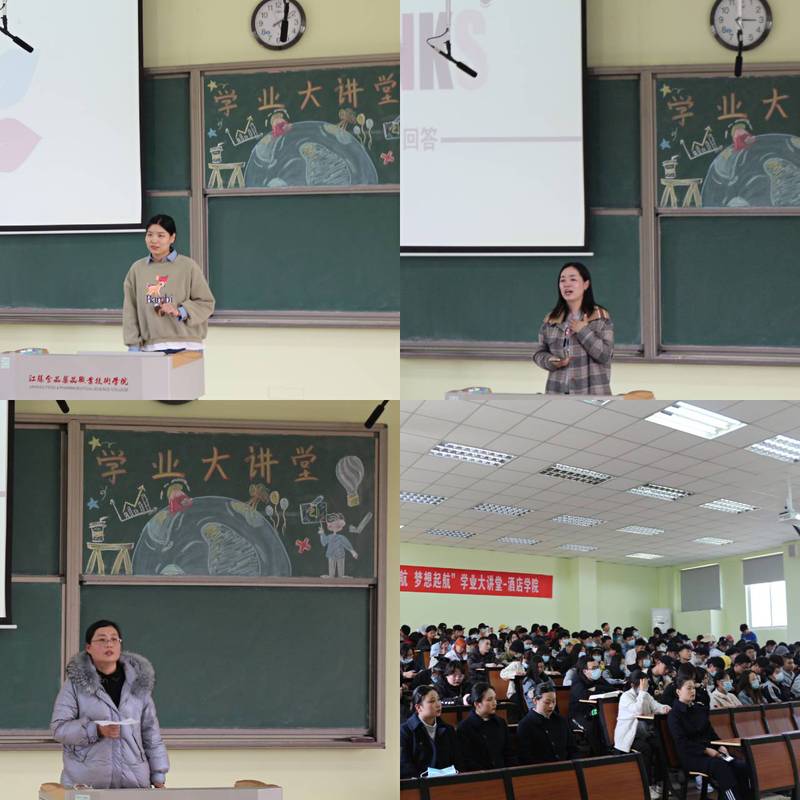 本次活动由刘溪、李妍、汪晓琳三位老师担任主讲人,刘溪老师首先从专业毕业要求出发,为同学们点明毕业的要求,以其教授的面点专业为例,介绍了毕业以后的各种去向,分析了就业形势,鼓励同学们为即将到来的实习做好一切准备。李妍老师在此基础上,从餐饮旅游行业的大背景与大趋势出发,深入解析了餐饮行业在疫情压力之下的转型方向,为同学们介绍了新兴的“轻资产”理念,在更高的层面上俯瞰全局,一扫同学们对于就业未来的迷茫。在讲堂的最后部分,汪晓琳老师话锋一转——以初心为尺,以品行为鉴,呼吁同学们在仰望星空的同时,也要脚踏实地,保持对行业的热爱,提高自己的职业素养与道德素质,在成长的路上用一颗初心去看待沿途的名与利。三位老师关于就业与实习的教诲如迷航中的星光与灯塔——由浅入深、由远及近,助力着同学们青春的第一次“起航”。
