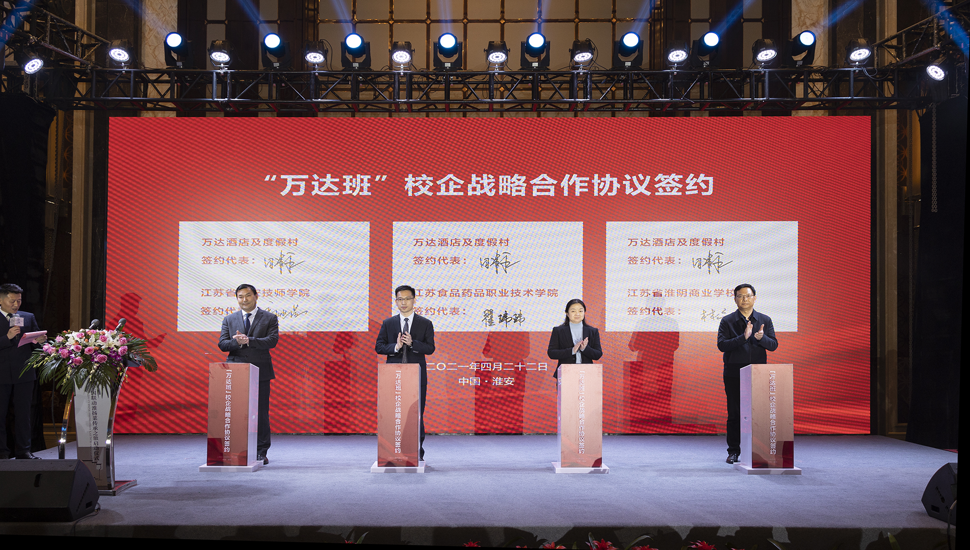 与万达酒店及度假村的合作将从人才培养、菜品研发、淮扬菜推广等多个纬度展开。经过前期双方的合作洽谈,在淮安市副政府和淮安市商务局领导的见证下,公司与万达酒店及度假村举行了战略合作签约仪式。集团将与酒店合作进行淮扬菜人才培养,开设淮扬菜现代学徒制教学班,酒店与公司互兼互聘人员,开展教学和菜品研发,长期共同开展淮扬菜推广活动。