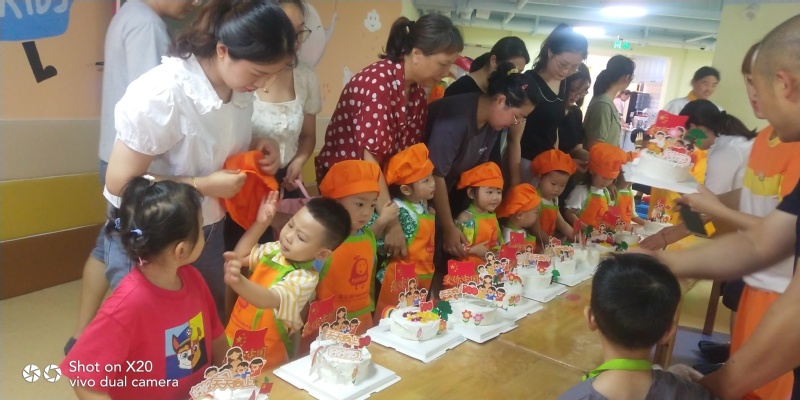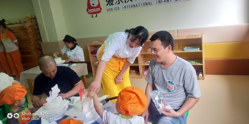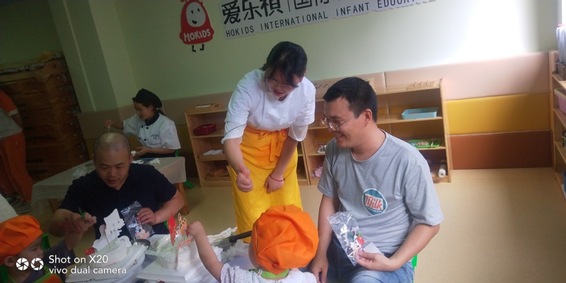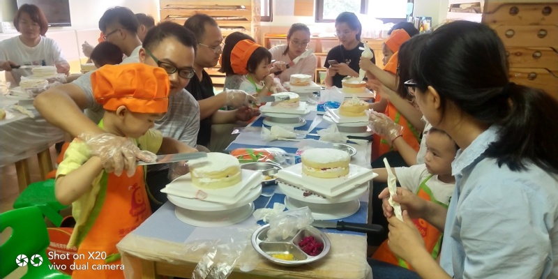 活动过程中,教师和员工利用专业优势,教幼儿园小朋友和家长朋友共做蛋糕。做蛋糕过程中小朋友们很开心,学的非常认真。