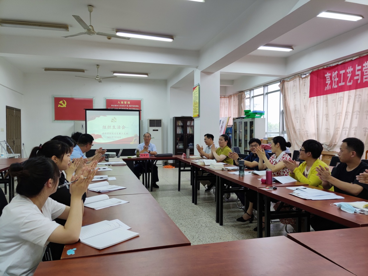 7月15日下午,公司党总支教工党支部在bw西汉姆联会议室召开了组织生活会。江苏食品药品职业技术公司党委书记陶书中、公司党总支书记董道顺列席指导。教工党支部书记杨绪光主持会议。