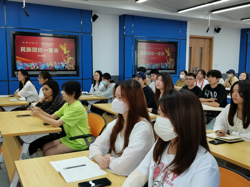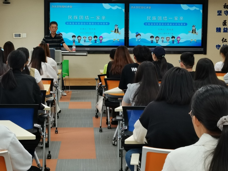 刘士成老师以“民族团结一家亲”为题畅谈了对我国民族团结问题的认识与思考。他首先介绍了我国经过自卫反击、和平演变、外族占领与主动归顺等路径成为多民族国家的历程,又通过俄乌冲突、南斯拉夫分裂等反面例子强调了民族团结的重要性,最后从文化、国力、政策、民心四方面阐述了我国各民族紧密团结的原因,并号召所有同学用自己的真情和行动浇灌民族团结之花,使之处处盛开。