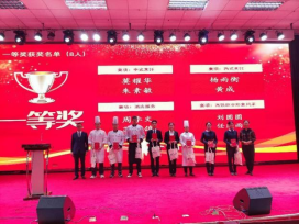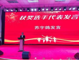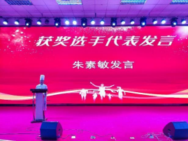 在颁奖仪式环节,领导、来宾、团队教师为获奖选手颁发各奖项荣誉证书及奖品。两位一等奖获得者并被选拔为省赛参赛选手的朱素敏,苏宇鸽作为参赛代表发言。