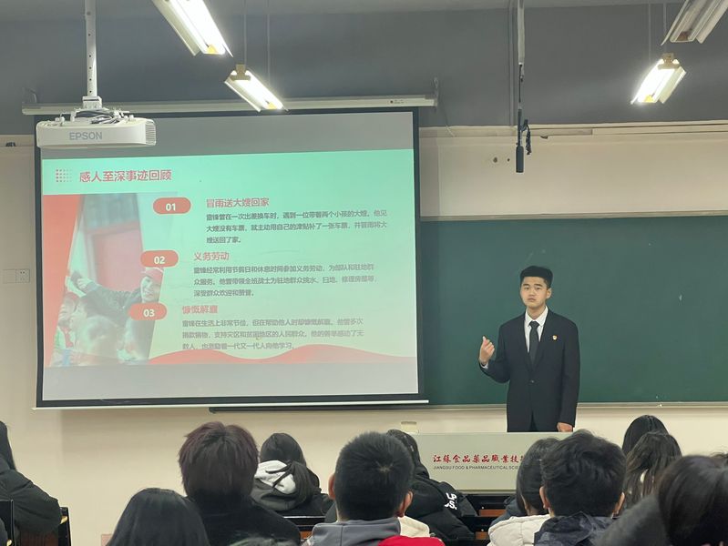 3月4日下午,潘守梁同学面向入党积极分子和各班团支书、班长进行宣讲,厚植雷锋精神。3月5日上午,张天宇、魏从明、刘宇萍同学深入淮安市枚乘中学进一步解读、弘扬雷锋精神。3月5日下午,唐静宜同学为新星幼儿园的小朋友们宣讲雷锋精神,带领小朋友们做小红军包包,用实际行动传承雷锋精神,弘扬时代新风。