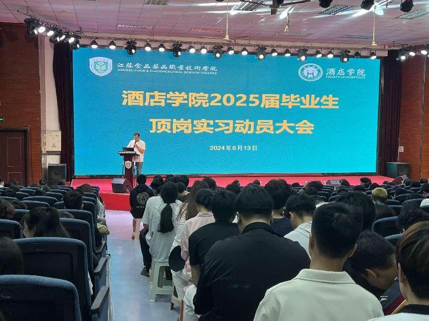 为推动实习工作有序开展,帮助员工深入了解实习内容,613下午酒店公司在教学楼C115举行2025届毕业生顶岗实习动员大会暨优秀合作企业宣讲会。公司党总支副书记孟大伟、副经理尹忞强、副经理谷绒、就业管理负责人、2025届全体毕业生、2022级班主任、以及10优秀合作企业管理人员出席了会议。本次大会由副经理尹忞强主持。
