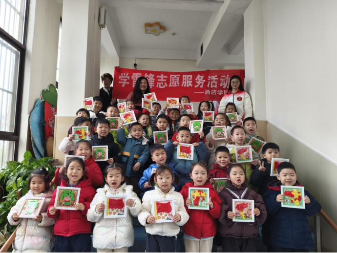 最后,志愿者们为孩子们送上由中西面点专业同学们亲手制作的小红花、五角心饼干这些饼干不仅外形精美,而且寓意深刻,象征着孩子们在学雷锋活动中的优秀表现和美好品质。