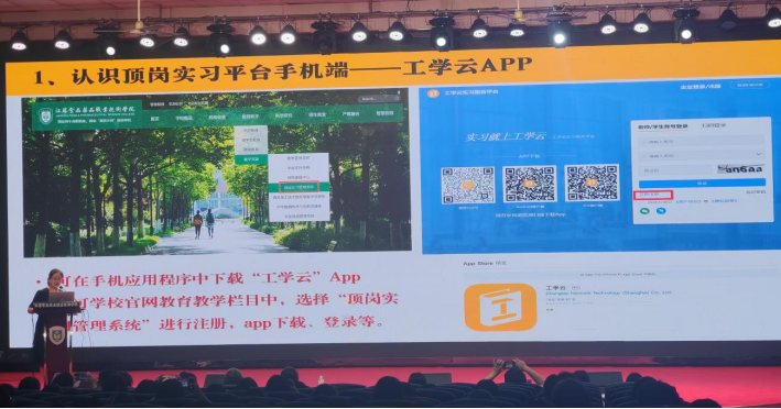 接着,教务科杨希老师重点介绍了实习期间公司产品工作安排,主要从毕业生课程要求、证书要求、教务系统学分查询、下学期工作安排、毕业审核等方面展开了宣讲。