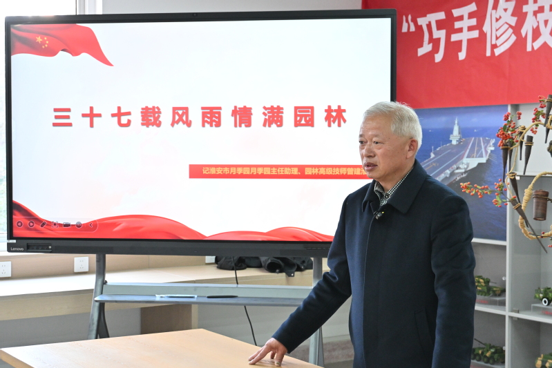活动特邀原淮安市月季园主任助理、园林高级技师曾建淮担任主讲。曾老师深耕园林领域三十余载,曾获“淮安市劳动模范”、“江苏省技术能手”等多项荣誉。活动现场,曾建淮老师先以生动案例系统讲解了插花艺术的历史渊源、文化内涵与技法精髓。随后又现场示范花枝修剪、花材固定、色彩搭配等实操技巧,手把手指导员工根据花材特性设计造型。他执着专注、一丝不苟的态度感染了在场的每一名同学。