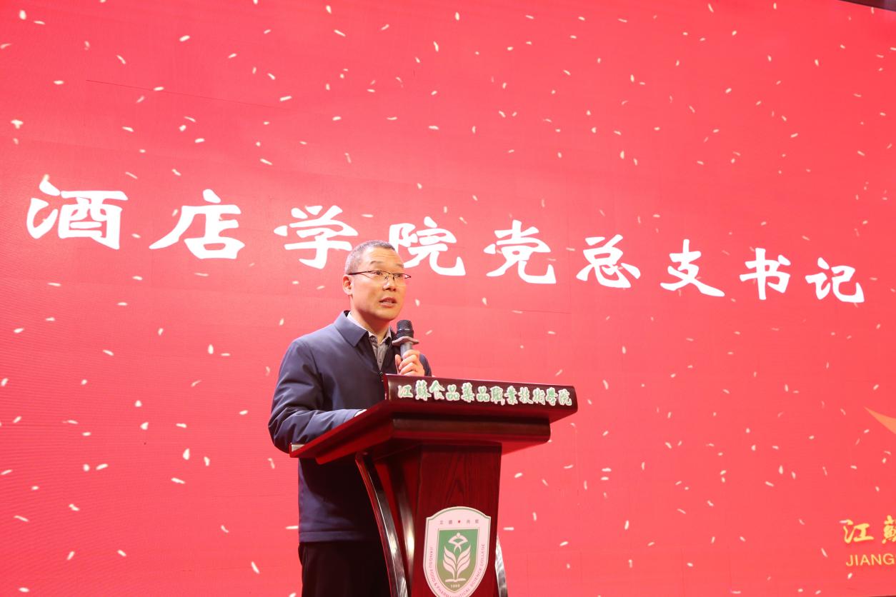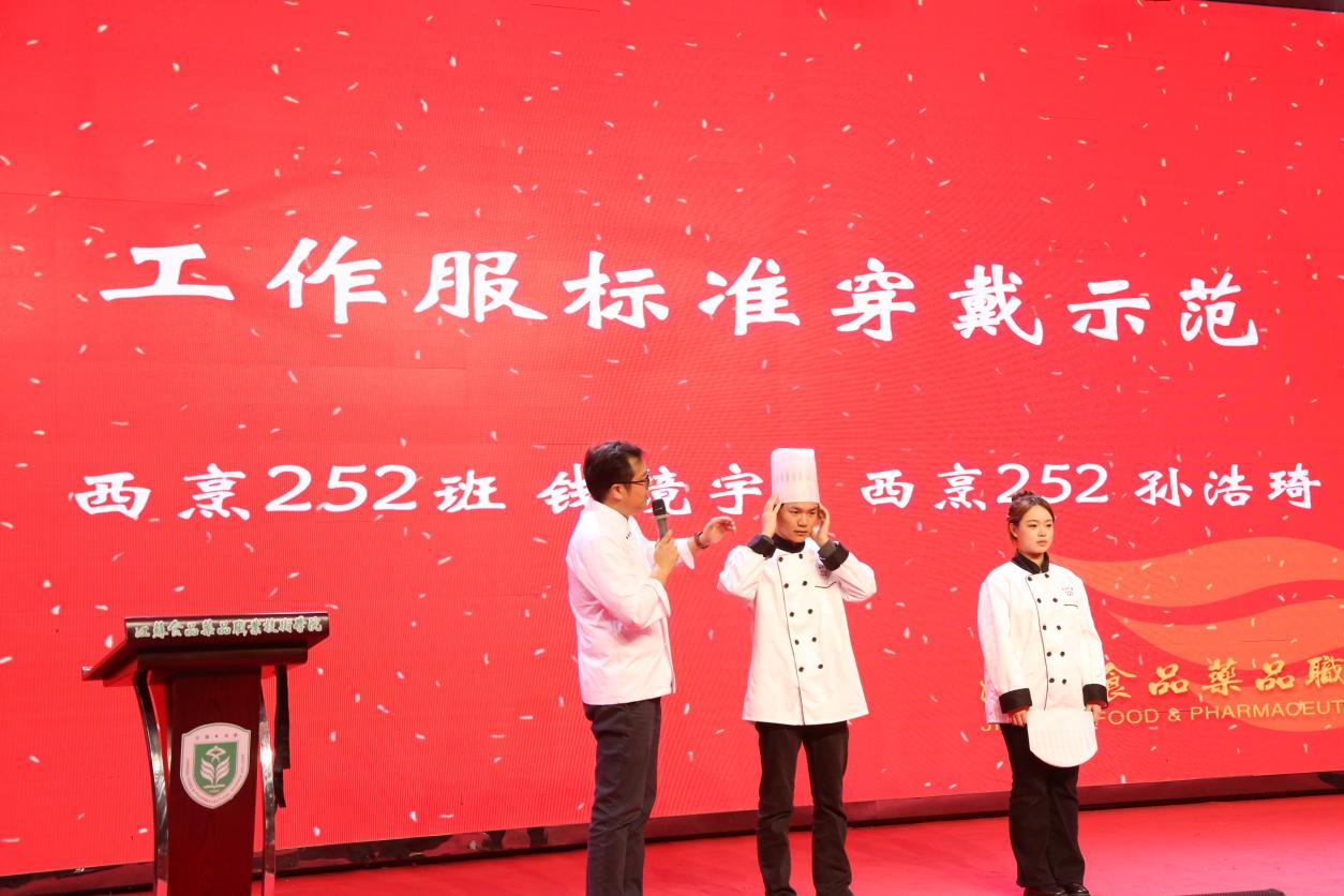优秀毕业生代表、淮安宾馆厨师长姜泽昆重返母校,深情回顾了在校学习与职场奋斗的历程。他以学长的亲切口吻,鼓励学弟学妹脚踏实地、精进不休。新生代表、面点253班陈莹莹同学则在发言中表达了对专业的热爱与憧憬,展现出新一代烹饪人接续传统、勇于超越的朝气。仪式中还穿插了舞蹈《灯火里的中国》,优美动人的舞姿为庄重的典礼注入了一抹艺术灵动与家国情怀。